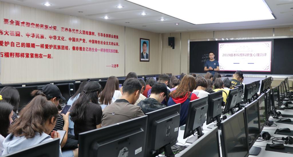 调查测评。测试开始之前,辅导员老师首先对本次测试的注意事项作了简要阐述,希望同学们能够认真答题,专心测验。