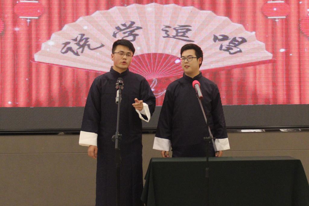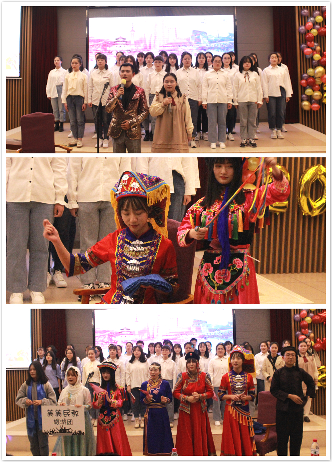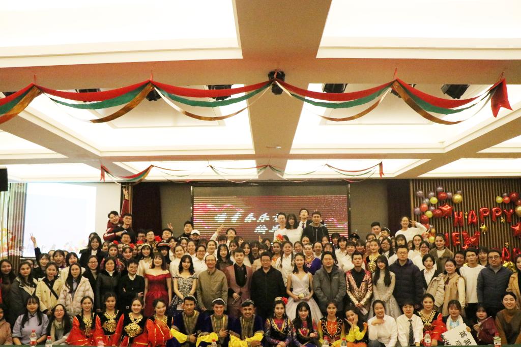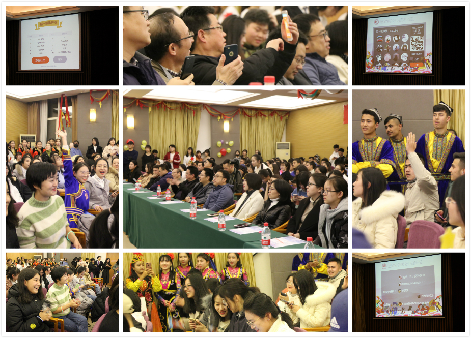 的祝福视频,让在场的同学们共同回忆起开学至今的点点滴滴。随后主持人宣布晚会正式开始,蓝草吉他社带来的吉他弹唱《世间美好与你环环相扣》和《情非得已》,让大家回忆起了那些青葱美好的岁月;由同学们自编自导的英语舞台剧《灰姑娘》,古老的故事,全新的演绎,令人耳目一新;《配音秀》则带给同学们不一样的视听享受,让同学们感受到独特配音的魅力;说唱歌曲《fly away》展现了新时代青年的自信姿态;歌曲串烧《18号列车》把我们带回了那些青春萌动的时光;舞蹈串烧《舞魂》融合了塔吉克族、哈萨克族和维吾尔族的三种传统民族舞蹈,让我们领略了各族的风情魅力;话剧《雷雨新编》结合各地方言,赋予经典新的色彩;相声《今天的幸福》结合了同学们的师大生活,使观众们捧腹大笑之余思考了生活意义;诗朗诵《黄河之水天上来》和合唱《卢沟谣》表达出新时代青年报效祖国的决心和毅力,现场气氛走向高潮。晚会接近尾声,一曲《不忘初心》让我们重温了新中国一路走来经历的风雨,同学们再一次领会“不忘初心,牢记使命”的深刻意义。观众们轻声附和的歌声回荡在晚会现场,迎新晚会在这温暖的歌声中圆满结束。本次晚会期间还进行了有趣的互动抽奖环节和微信弹幕上墙活动,现场参会嘉宾和同学们都积极参与,增加了晚会的互动性和趣味性。