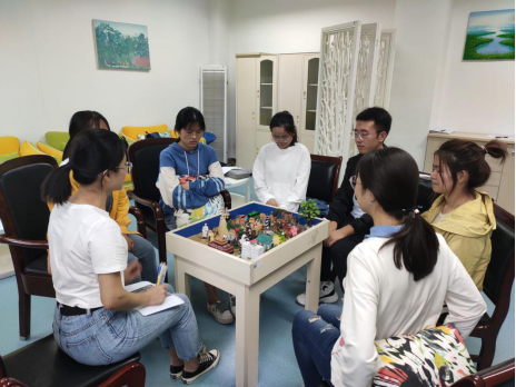 本次心理团体辅导活动以沙盘游戏的形式展开。首先,辅导者和同学们通过简短的自我介绍互相对彼此有了初步的了解和信任,这也为活动的顺利开展营造了轻松的氛围。其次,辅导者介绍了活动规则,同学们进行了随机抽签并按照顺序选择自己喜欢的物件分7轮摆放在沙盘上,最终形成了同学们共同的作品。