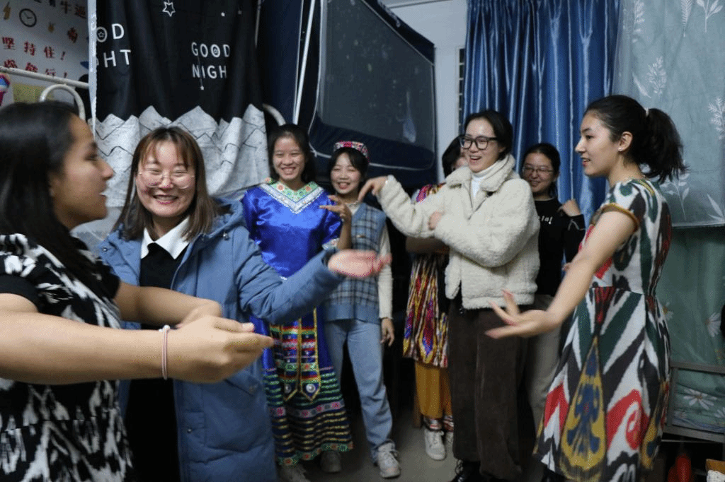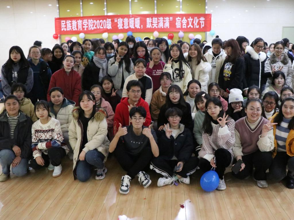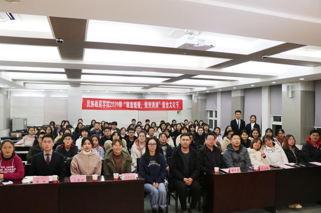 随后,学生骨干代表、生活部部长潘保茹做文化节活动总结发言,向本次宿舍文化节给予大力支持和帮助的老师们和积极参与的全体同学表示感谢,对取得优异成绩的集体表示祝贺。潘保茹同学说道:“本次宿舍文化节以民族团结为主线,对促进同学们之间的交往交流交融,互帮互助,构建和谐校园环境具有十分重要的意义,活动圆满结束后,同学们不约而同的在民教院2020级的QQ群里发‘民教院一家亲’的信息,同学们团结的精神态度令人十分动容。我希望通过这些活动同学们能深感‘民族团结一家亲’的重要内涵,更加珍惜民族团结,乐享民族团结带给我们的欢乐与喜悦。”