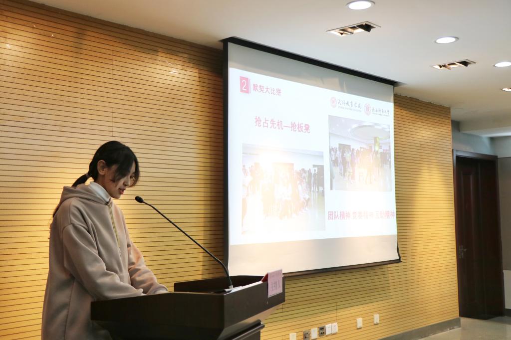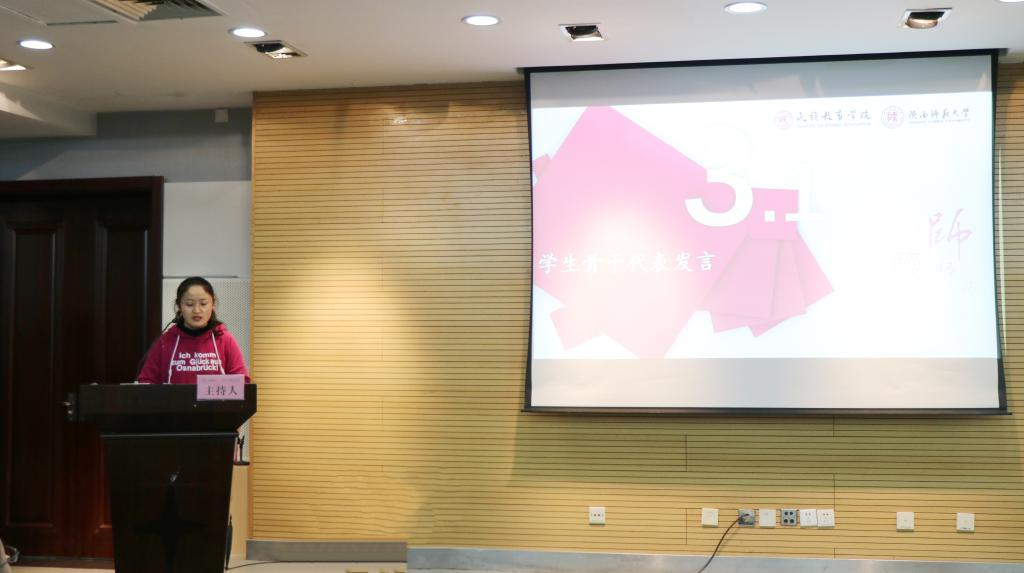 首先,学生代表马佳睿同学向参会人员分享她在本次宿舍文化节的所见所闻所感。她将“默契大考验”活动中体现出的精神总结为:团队精神,竞赛精神,互助精神;将“室全室美”活动总结为三个方面:温馨有爱、文化交融、包容制约、民族团结;最后她说到:“各民族的同学穿上自己民族服装,表演各自民族才艺,我感受到了同学们都将各自民族文化展现给大家,让同学们学习了解各民族的文化和特色,在宿舍合影上看到大家的笑脸,体现出了大家对少数民族文化的尊重,热爱中华民族的情感以及同学之间的民族凝聚力。”