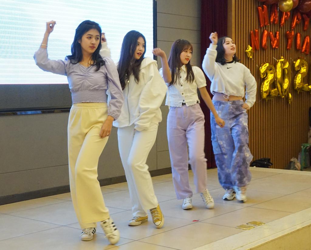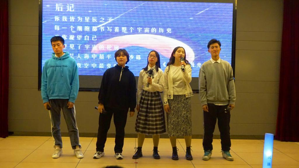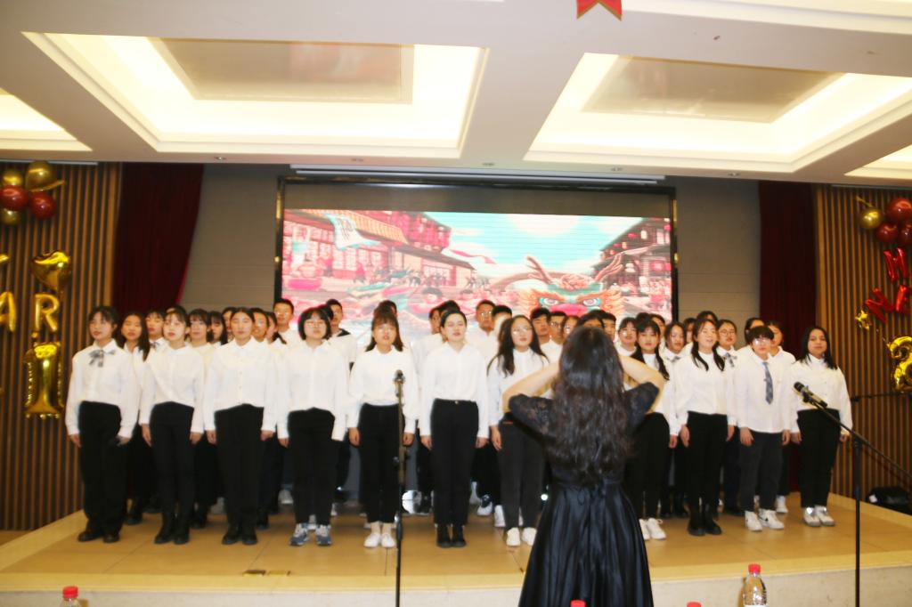 的新年祝福。窦文阳老师为同学带来新年致辞,向大家表达了新年的祝福,同时希望同学们新年新气象,充满斗志,脚踏实地,胸怀梦想,不断向前。倒计时结束,炫酷的开场舞展现了民教学子的青春活力。随后主持人宣布晚会正式开始