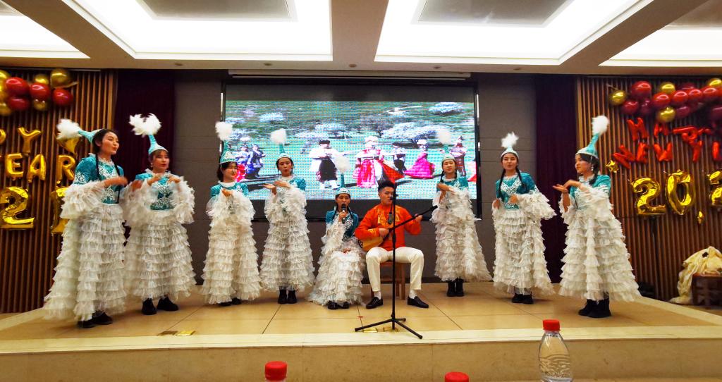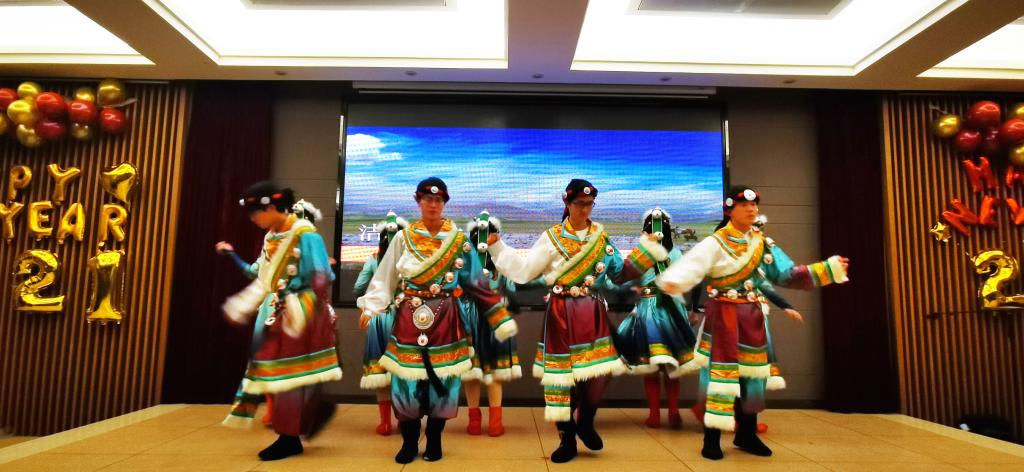 雁塔区启夏苑二楼多功能厅拉开帷幕。党总支书记郑生忠,党总支副书记、副院长窦文阳,新疆内派管理服务教师买买提·热合曼,孙国强,教师代表段亚绒、戴妍、乔露、高立权及各班辅导员出席本次晚会。