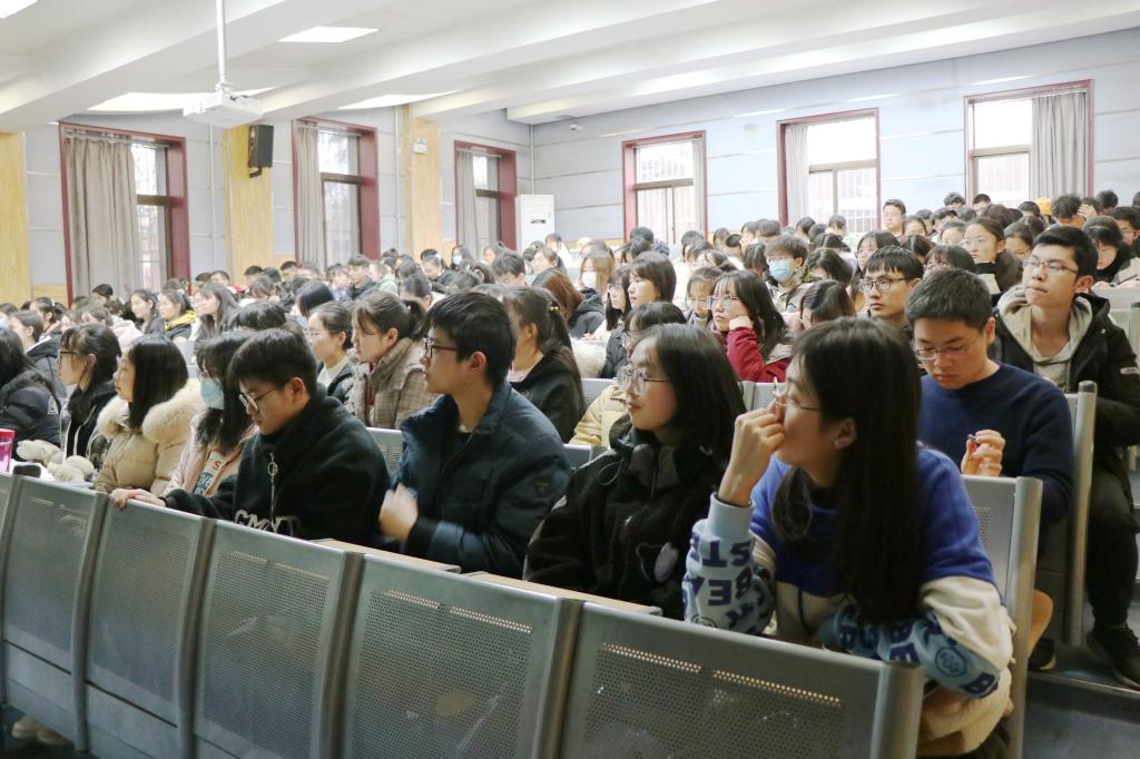 考试中出现的考试作弊典型事件和受到处分的案例,对诚信考试做了详细说明,希望同学们引以为戒,积极备考,诚信应考。其次,窦老师向同学们提出几点建议与要求:一、正确认识、高度重视,端正态度、树立自信,严肃考纪、诚信考试;二、夯实基础、理清复习思路、提高复习的效果,在本次期末考试中取得好成绩;三、尽快确立目标,明确学习任务。