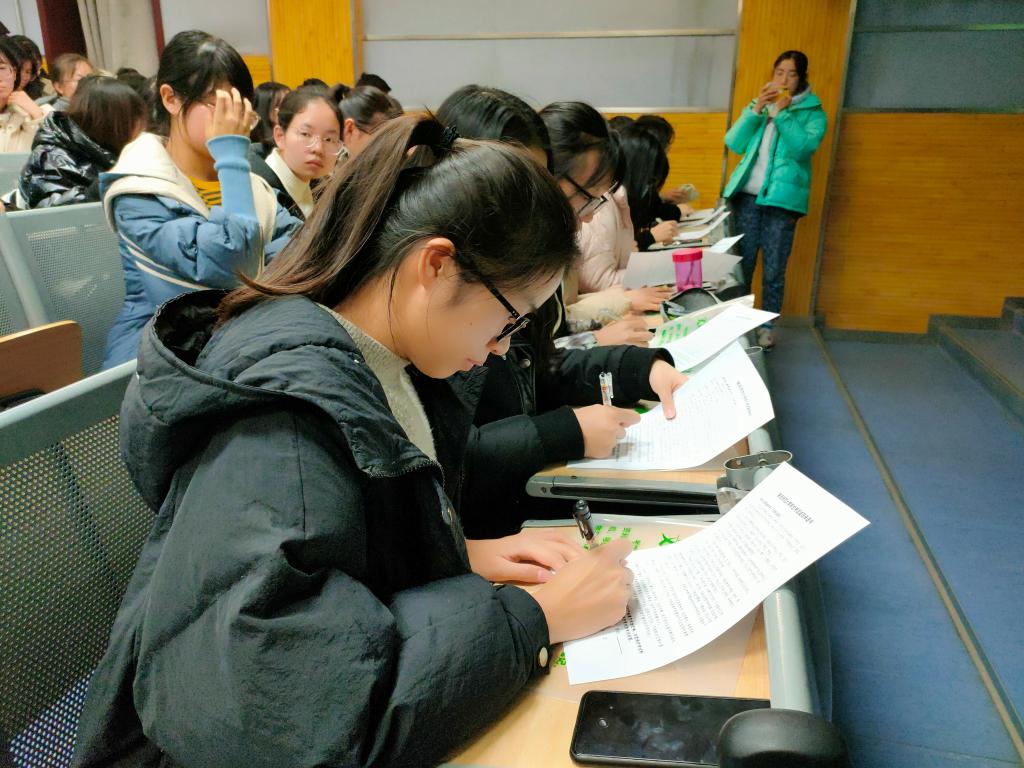 大学《学生考试诚信承诺书》,各班班长向大家发放考试袋。