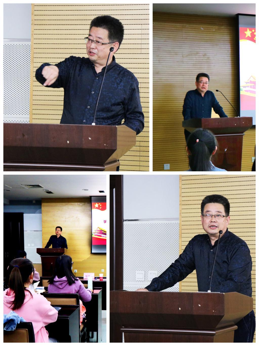 党总支书记郑生忠老师为同学们带来团校培训开课第一讲。郑老师发问当代青年:什么是当代青年使命与担当?通过纵览国际形势,回顾中国战疫历程来坚定青年“四个自信”树牢青年“四个意识”;在回顾党波澜壮阔的历史中,让同学们知道新中国崛起是中国共产党的正确领导、人民的选择、历史的必然。郑老师通过讲党史、讲近代史、讲社会主义发展史,带领同学们了解历史进程,感悟历史成就,把握历史大势,同时希望各位同学在本次团校培训中能做到知史而自信,学史而惜今,信史而笃行。他强调:“我们全体老师和学生要全身心的认真的学习党史,用党史和党的精神武装我们的思想,筑牢我们中华民族共同体意识,筑牢我们跟党走的坚定信念,并且要把理论知识投入到实践当中去,要有心得、有记录、有成长、有实践”。