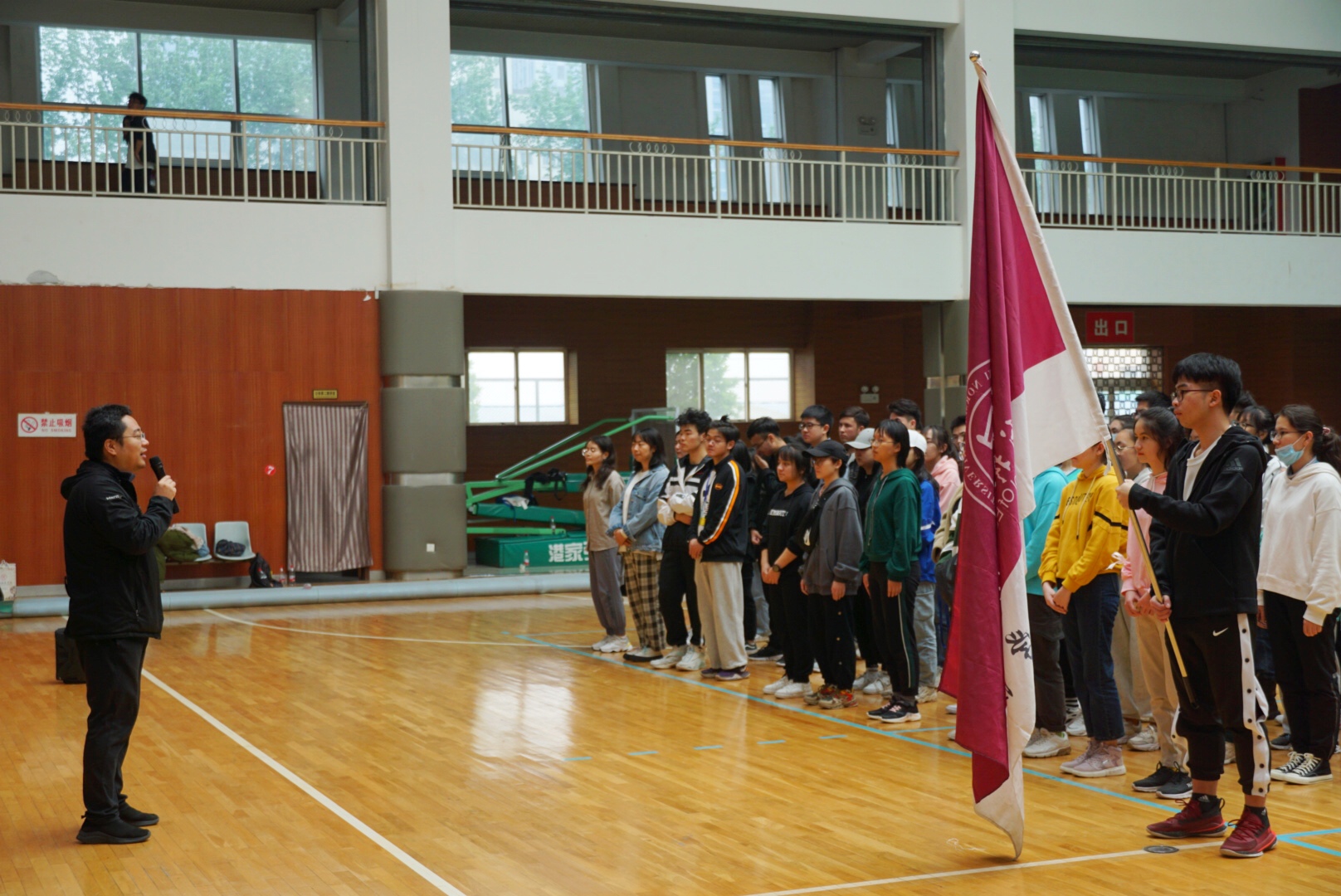 随后是学生会主席沈翰蒙同学发言,强调同学们要谨记“友谊第一,比赛第二”;裁判组代表李瑞珉同学宣誓:全体裁判员和工作人员将秉承公平公正公开的原则,确保成绩真实有效。在体育部部长马宇同学宣布比赛项目以及比赛规则后,比赛正式开始。