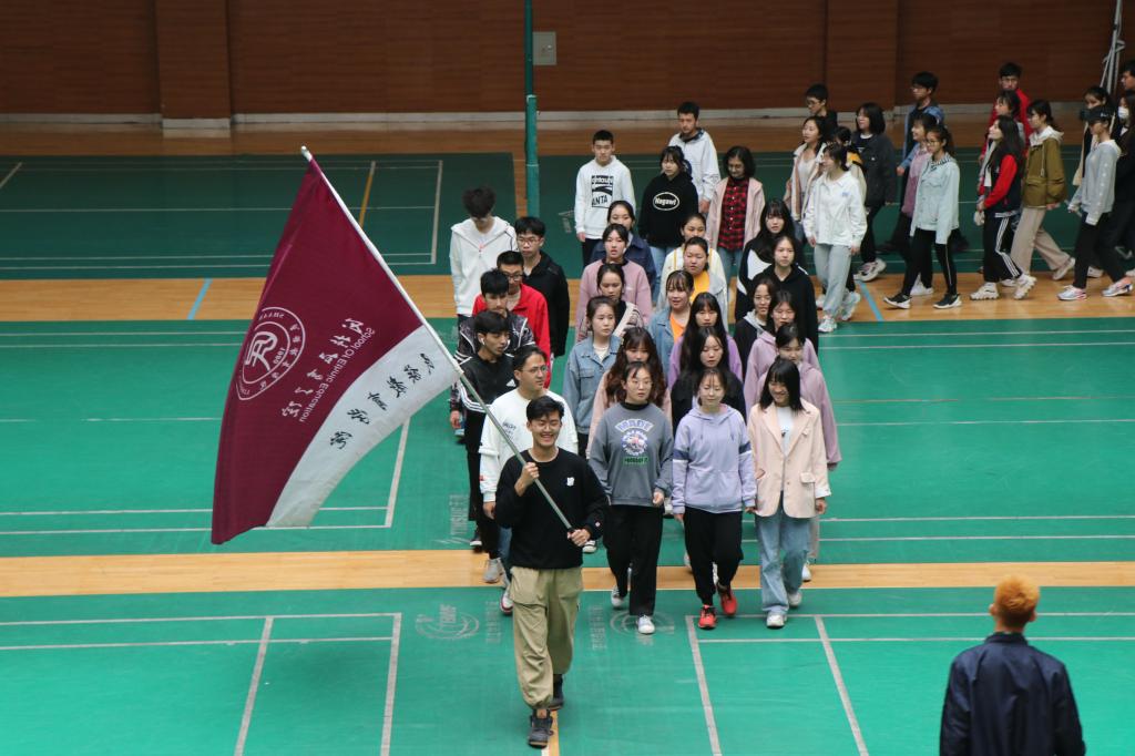 “全体运动员入场!”六支运动员队伍随着飘扬的院旗进场。一声声响亮的口号,喊出了青春的活力,喊出了同学们积极向上的精神面貌。