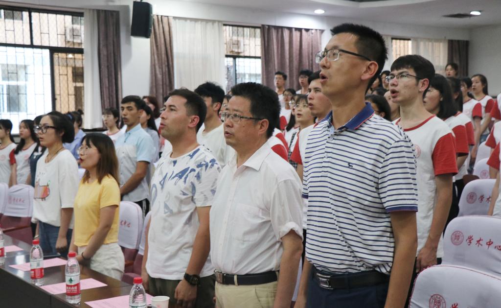党总支书记郑生忠,党总支副书记高冬,新疆内派管理服务教师孙国强,教学秘书贾文红,教师代表戴妍、乔露,全体辅导员,以及全体学生参加了大会,大会由预科2班马博亚和预科1班苏雯雨主持。