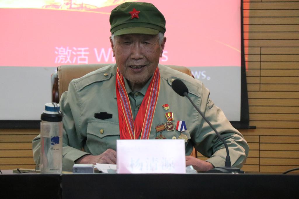 杨清源以自身经历勉励同学们认真学习,努力进步,深刻学习贯彻党的十九届六中全会精神,在以习近平同志为核心的党中央的领导下,为实现中华民族伟大复兴做出应有的贡献,完成时代赋予的光荣使命。