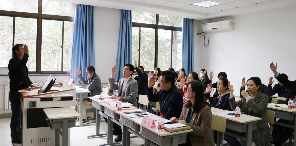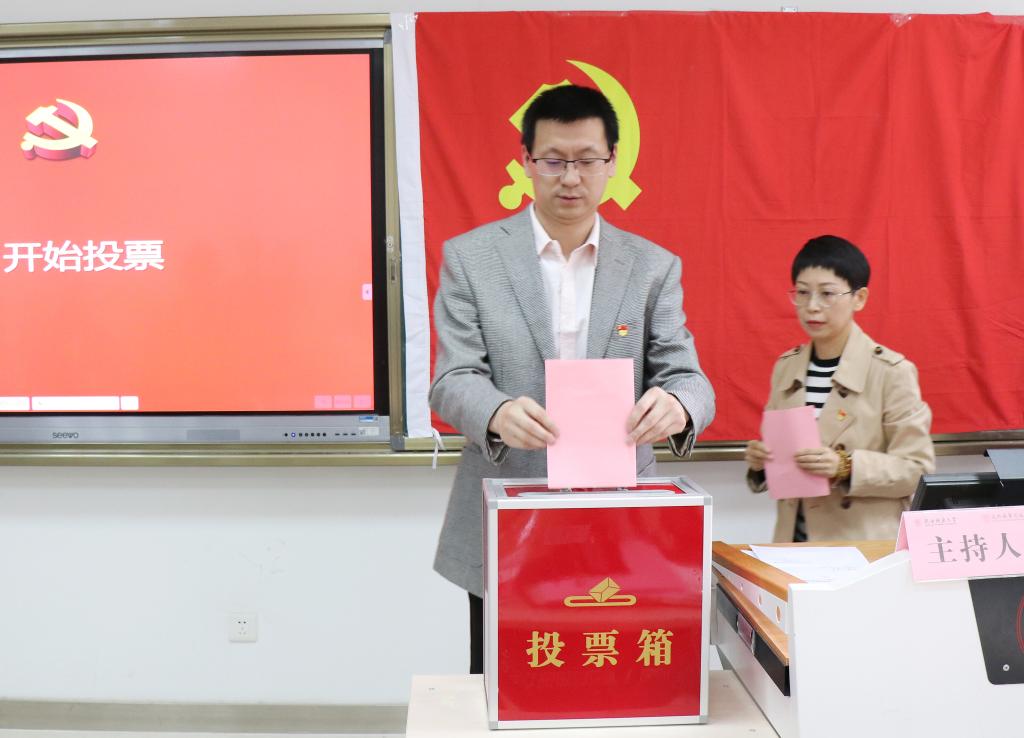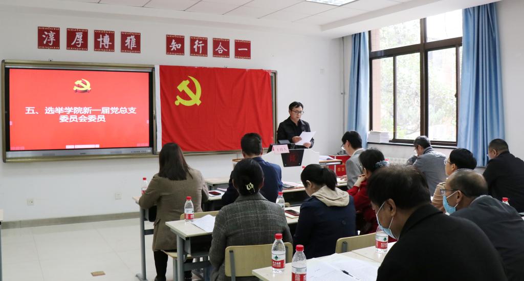 总支部委员会党员大会选举办法(草案)》、总监票人、监票人和计票人名单。随后,龙宝新介绍了新一届党总支委员会委员候选人预备人选酝酿产生情况及候选人基本情况。大会严格按照换届选举办法及相关程序,采取无记名投票、差额选举的方式进行。大会选举产生了由龙宝新、成珊娜、郑生忠、热依木·努尔麦麦提、高冬(按姓氏笔画为序)等五位同志组成的新一届党总支委员会。