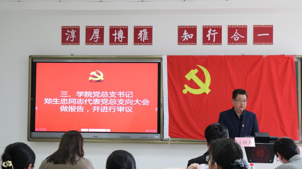 党总支书记郑生忠代表上届党总支作了以《党建引领高质发展,培根铸魂立体育人——为建设全国一流少数民族人才培养基地而努力奋斗》为主题的工作报告,回顾总结了五年来本届赌场老虎机