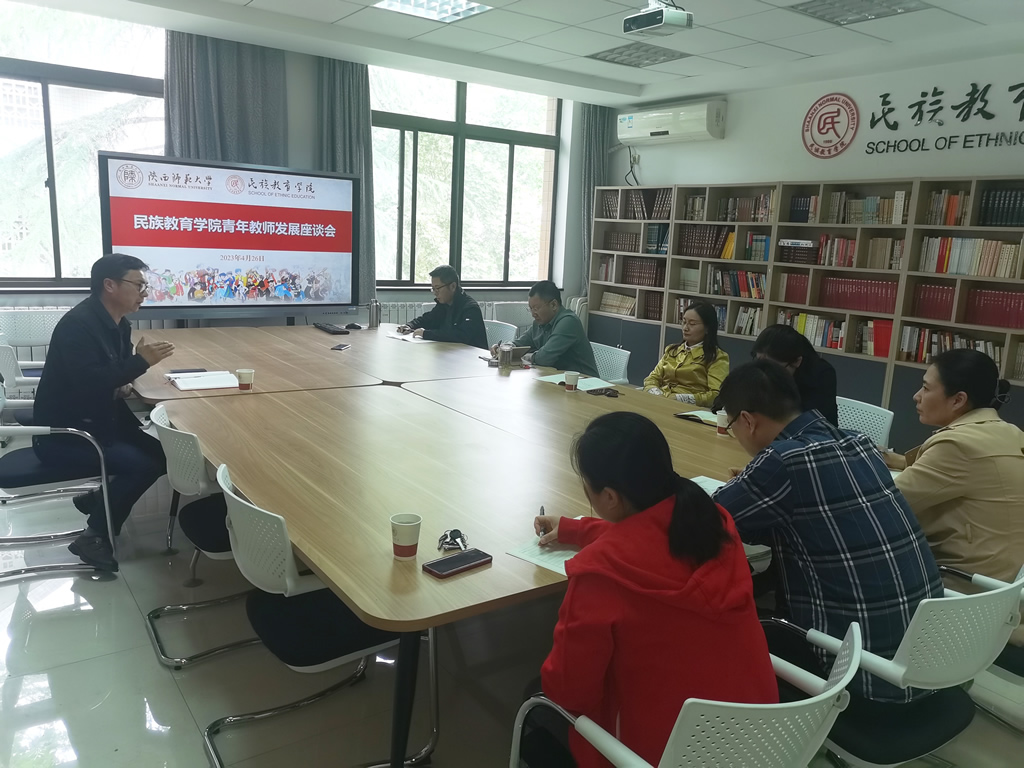 雁塔校区六附楼305会议室召开青年教师发展座谈会,院长龙宝新、办公室主任董涛以及赌场老虎机