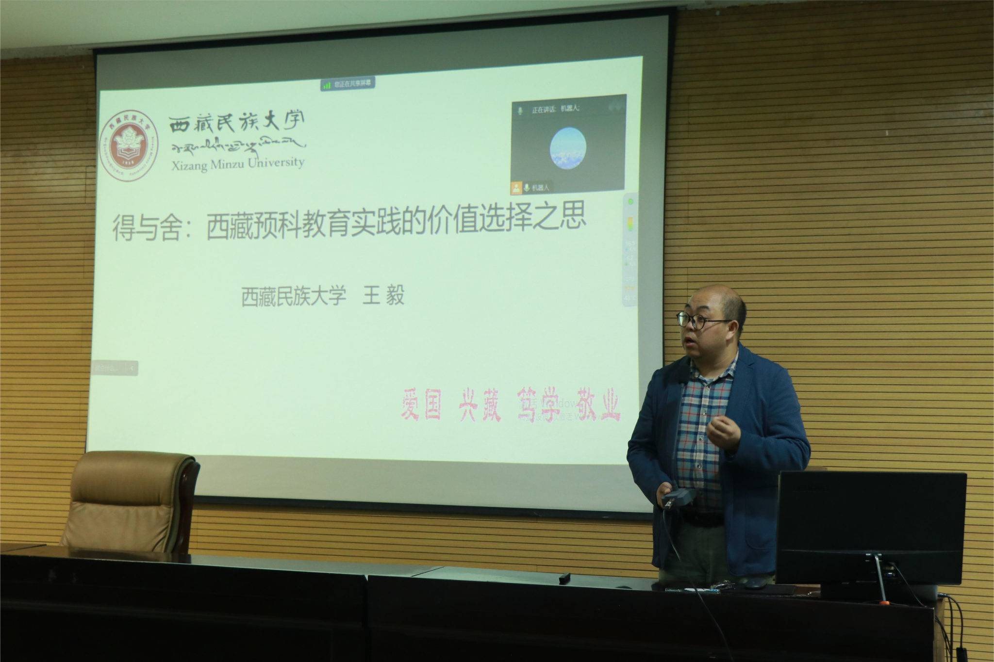 副院长王毅以《得与舍:西藏预科教育的时间价值选择之思》为题,结合国家与西藏民族大学预科教育发展脉络,剖析了预科教育的“预”“补”之争与“预”“补”并举,提出了预科教育持续改进的行动建议,即提升人才培养质量、增强育人的协同体系建设,切实推进预科教育实现区外预科教育与专门人才培养的高度融合。