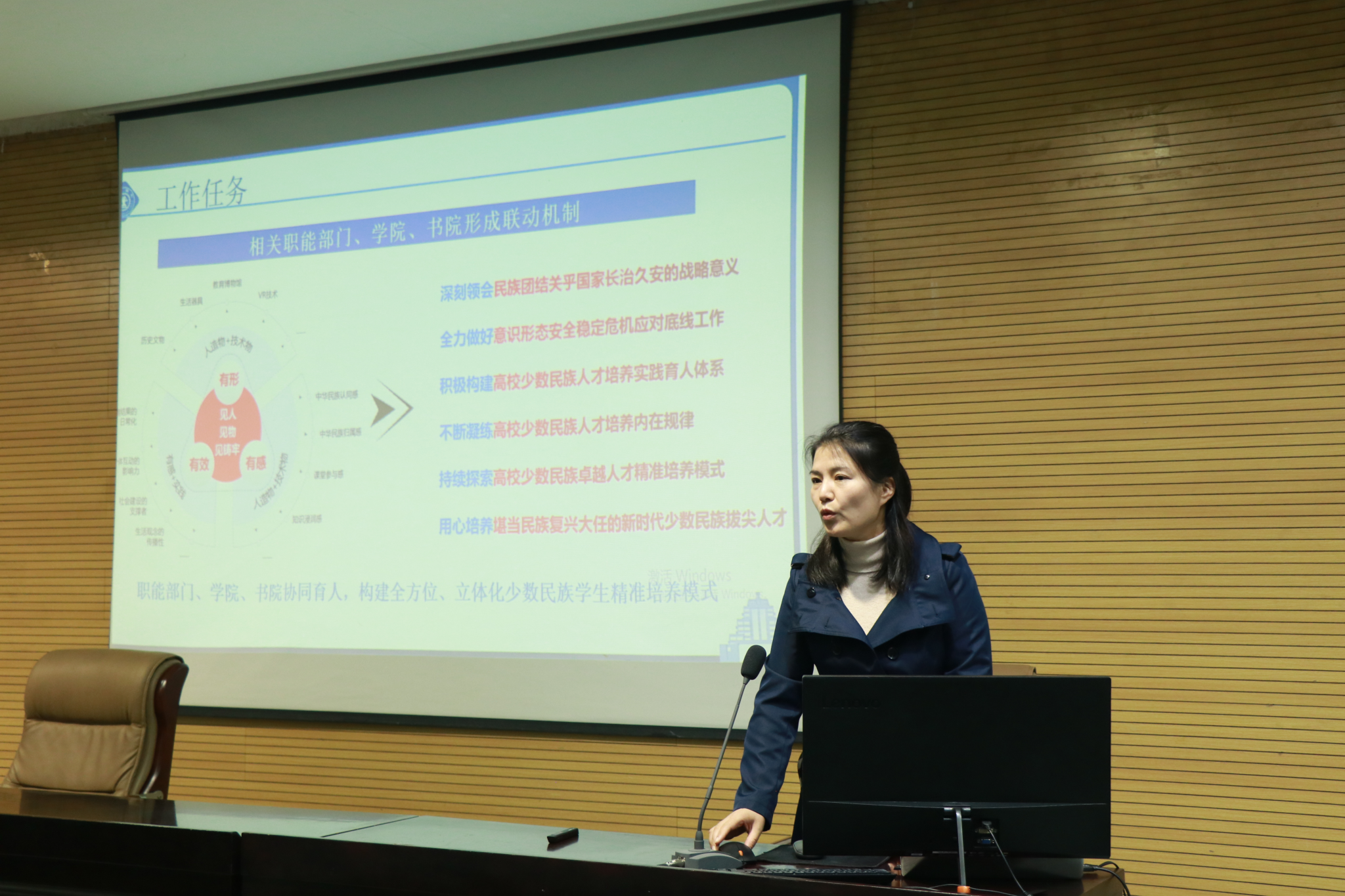 少数民族预科生教育的时代感、实效性》报告中用详实生动的数据、事例着重阐释了高校如何以习近平新时代中国特色社会主义思想为指导,全面贯彻落实国家民族政策,做好高校民族预科学生的自主培养探索工作。