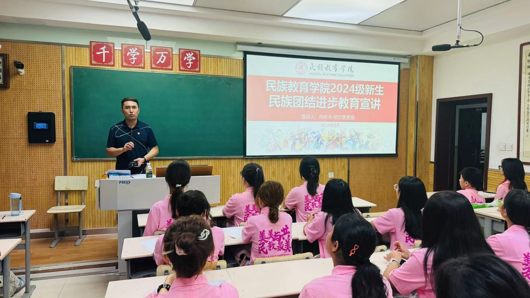 团委书记、专职辅导员热依木·努尔麦麦提作了以“坚持思想引领、强化安全教育、严肃校规校纪、争做时代新人”为主题的入学教育讲座,2024级全体新生参加了本次讲座。