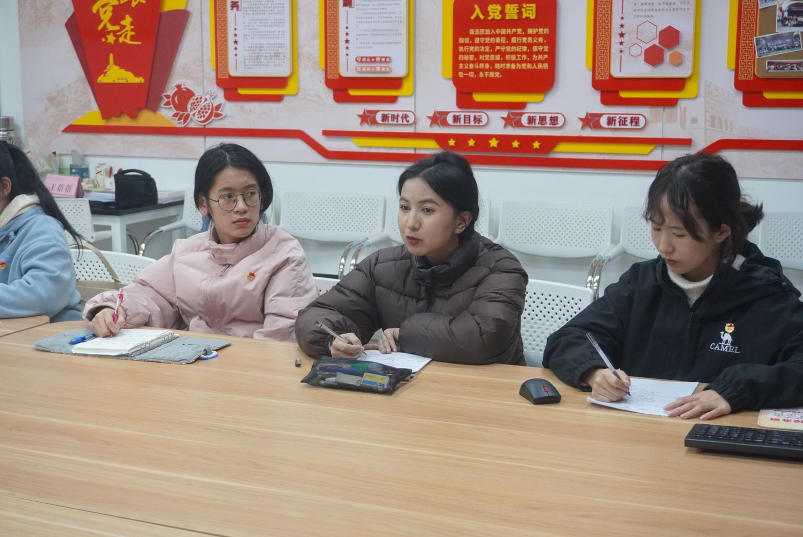 团委学生兼职副书记刘江珊、刘雅茹以及全体团支部书记参加会议,会议由组织部马丽雅主持。