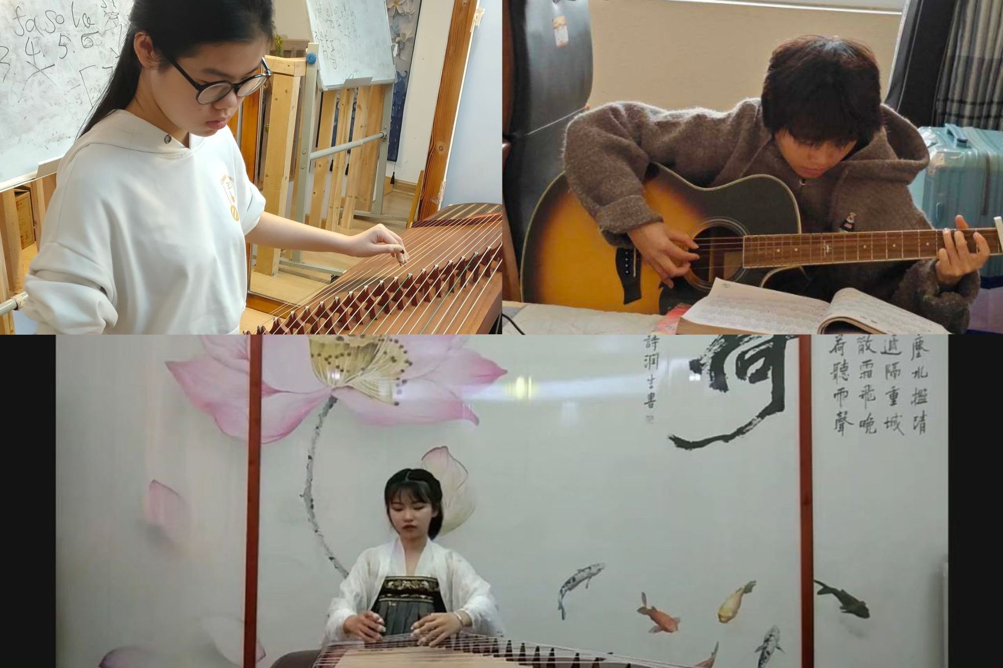 以乐器为笔,用音符作画;从吉他弦间的轻柔吟唱,到古筝弦间的悠扬曲调,假期时光被谱写成了一曲曲乐章。