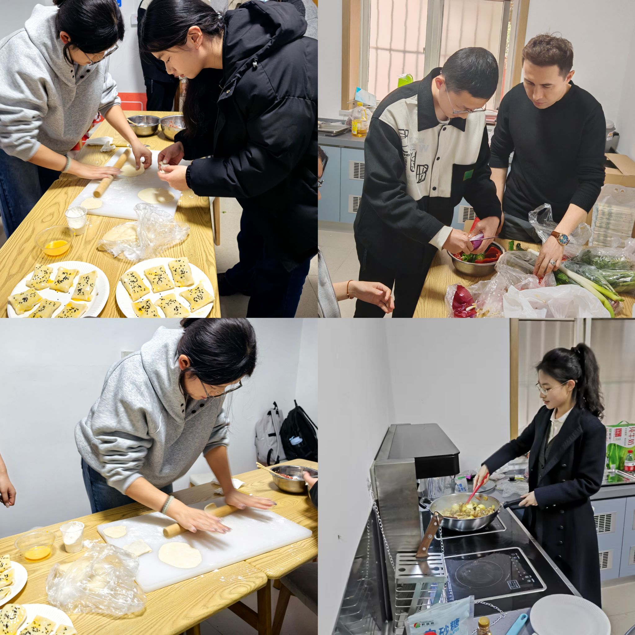 师生们欢聚一堂,共同筹备美味佳肴,构建起“美食+思政”沉浸式互动空间。活动当天,师生们分工协作,洗菜、搬桌子……一切都在井井有条地进行。