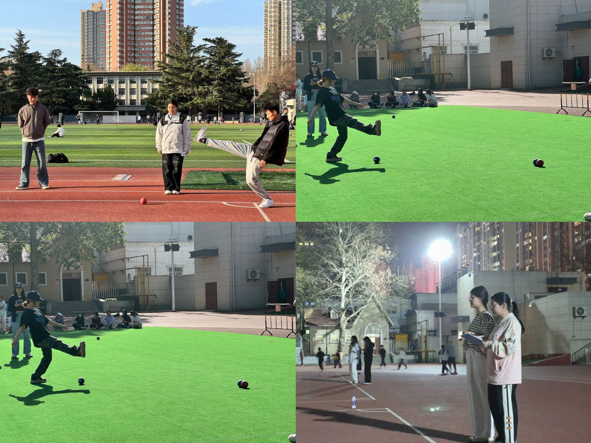 蹴球比赛现场同样精彩纷呈。参赛的各民族同学们屏气凝神,弯腰瞄准,用脚轻轻一“蹴”,那小小的蹴球便沿着场地的标线快速滚动。他们全神贯注地控制着球的方向和力度,巧妙地撞击对手的球,或是精准地将自己的球送入得分区域。每一次精彩的击球,都引发现场观众的阵阵喝彩,蹴球比赛不仅考验选手们的技术,更让各民族同学在相互切磋中加深了了解,增进了友谊,展现了独特的体育魅力和民族团结的浓厚氛围。