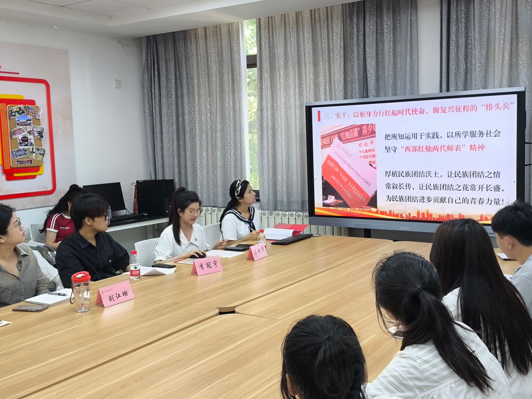 活动尾声,刘江珊对本次分享交流会进行总结,以“边疆教育与青年使命”为核心向大家提出三点期许。首先以文化认同铸魂:从历史纵深理解“多元一体”的民族格局,将个人成长融入“兴边固边” 的国家战略,让民族团结的种子在知识土壤中生根。其次是以知行合一强基:在专业学习中聚焦边疆教育需求,以“实地调研 + 教学创新”的实践路径,把课堂知识转化为服务边疆的真本领。最后是以星火之志燎原:勿以“基层教育事小”而不为,须知每一节边疆课堂都是铸牢中华民族共同体意识的前沿阵地。愿同学们以吴羽乔“青马先锋”的理论穿透力、李冠宇“边疆点灯人”的实践行动力为榜样,让青春在祖国最需要的地方绽放成炬火。