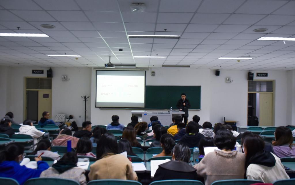 于贺兰山校区文荟楼230教室顺利举办关于银行、国企就业面试辅导讲座。宁政公考讲师李浩文为主讲人,2017级经济学、经济学(金融)专业全体本科生到场参加。