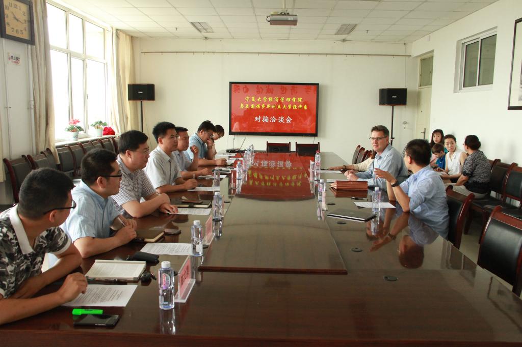 与美国堪萨斯州立大学经济系对接洽谈会”在文科楼会议室举行,出席会议的有美国堪萨斯州立大学经济系Blankenau教授及其妻子Angela,赌场老虎机