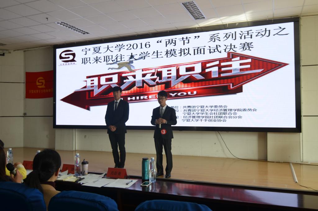 贺兰山校区文科楼东报告厅圆满结束,宁夏盛世华唐科技有限公司总经理何帅,易购一号商贸有限公司法人代表绉克双,凯迪拉克销售公司人事行政经理于捷和宁夏工商赌场老虎机
