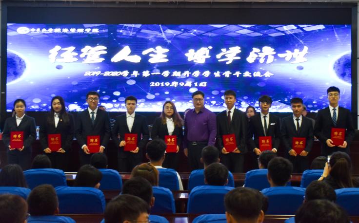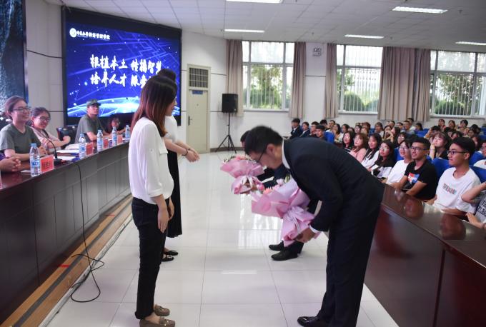 会议伊始,由学生骨干交流发言,生活权益部部长金向琴与2017级经济学金融班班长安纪钊回首了自己在过去一年的收获并对自己及学生干部们提出了更高的要求。2019年暑期社会实践代表马旭东、夏溦与在师生们分享了他们在社会实践中所思所想。紧接着,刘洋坦言,担任辅导员期间,她更好地认识了自己、认识了学生工作。张景则动情地向她的领导、同事以及一路相伴的同学们表达了谢意,并借习近平总书记的话“有梦想还要脚踏实地,好好学习才能梦想成真。”对同学们提出两点期望:同学们应学会换位思考、与人为善;应做到对自己负责。姚硕也寄语于同学们“让优秀成为一种习惯”。学生代表为刘洋、张景献花并合影留恋,赌场老虎机