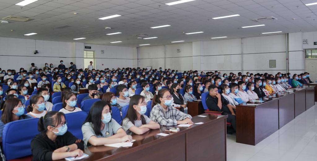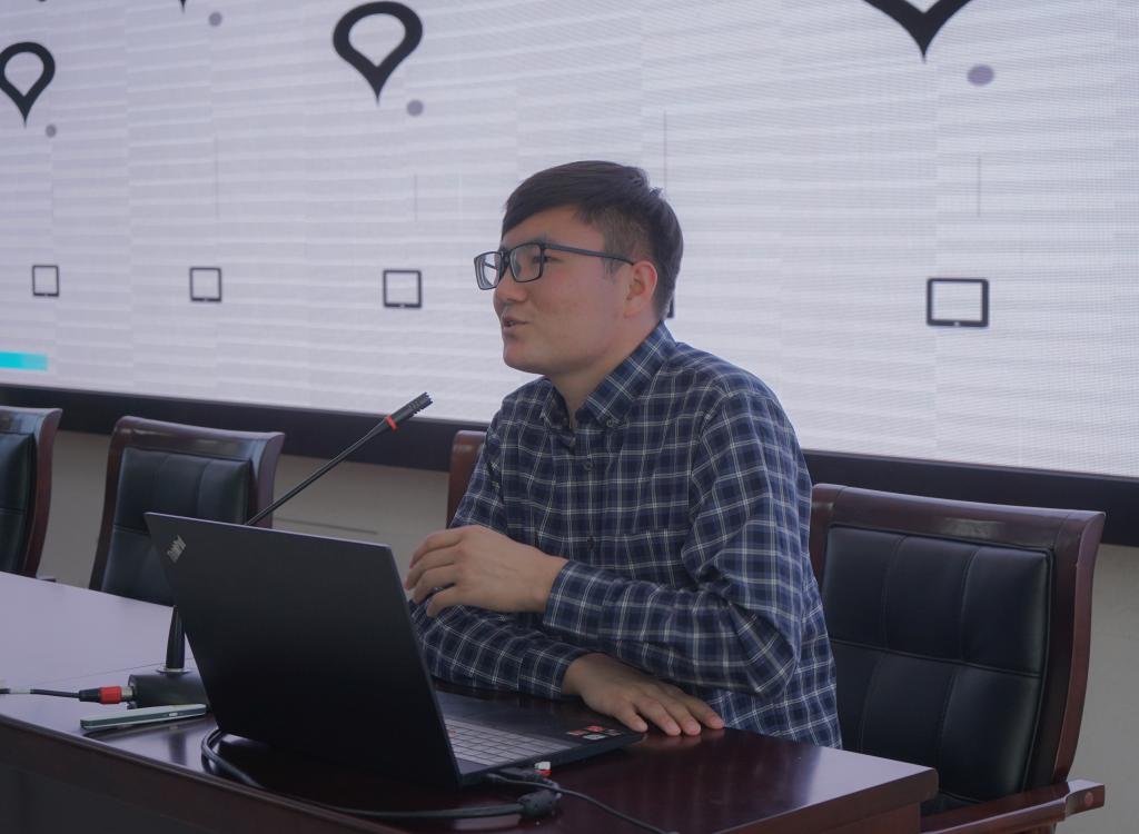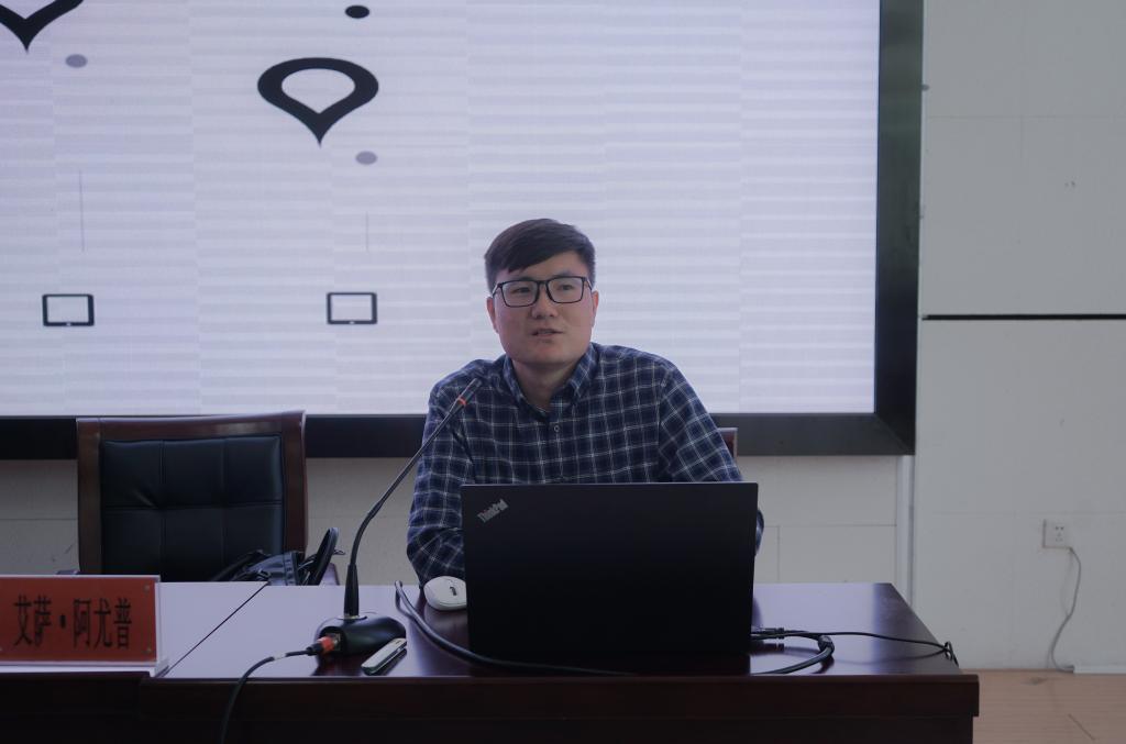 负责资助工作的辅导员艾萨·阿尤普进行资助政策宣讲,全体2020级学生到场参加。