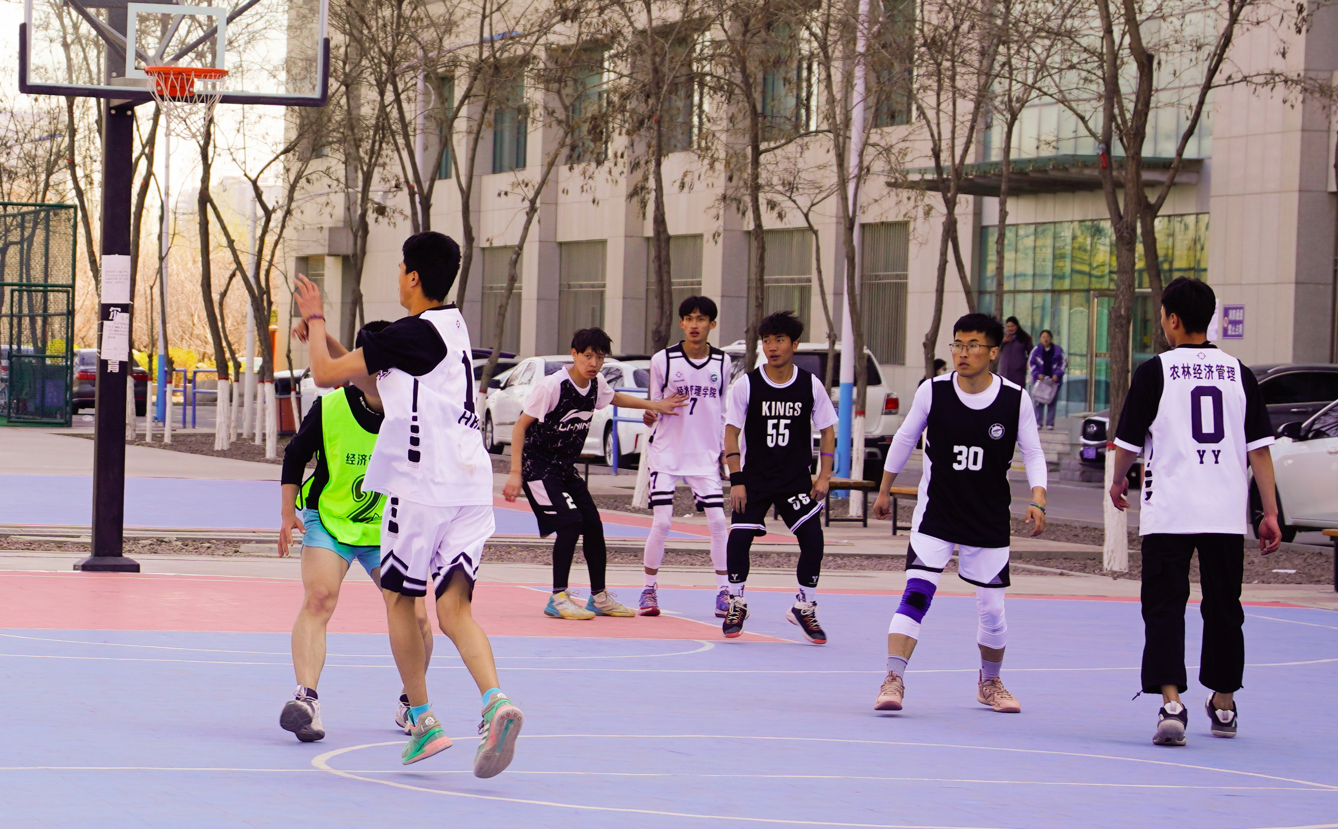 男子“经春杯”篮球决赛和女子“迎春杯”篮球决赛于贺兰山校区篮球场热火朝天的进行着。