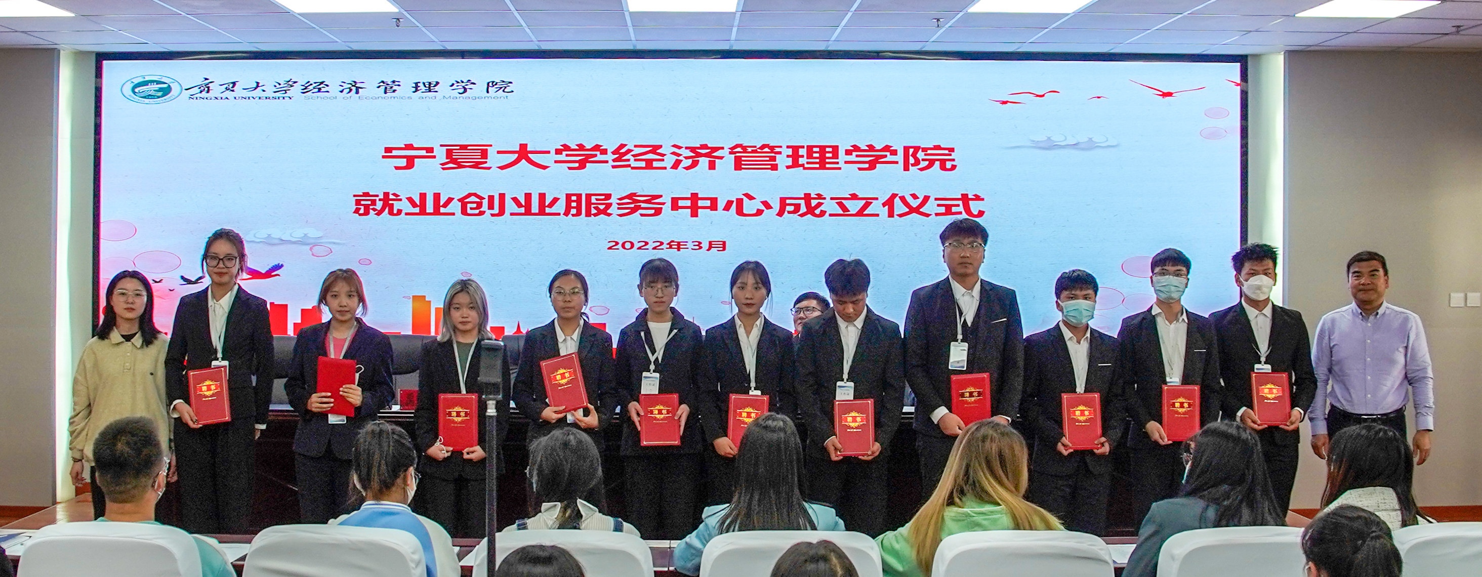 会议伊始,禹文杰宣布就业创业服务中心正式成立。孙文元宣读了就业创业服务中心第一届工作人员的名单。马建宏、姚硕为工作人员颁发了聘书。