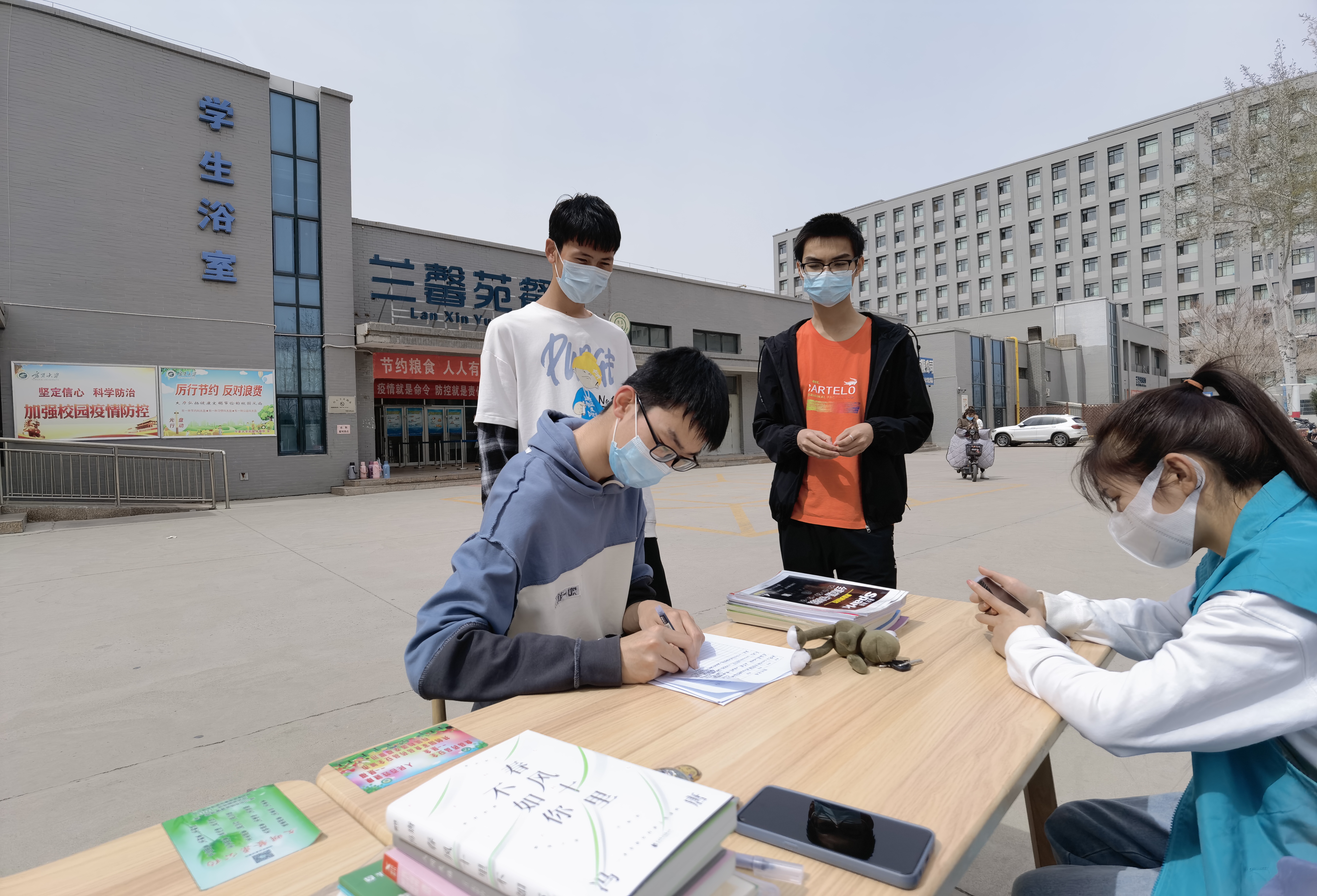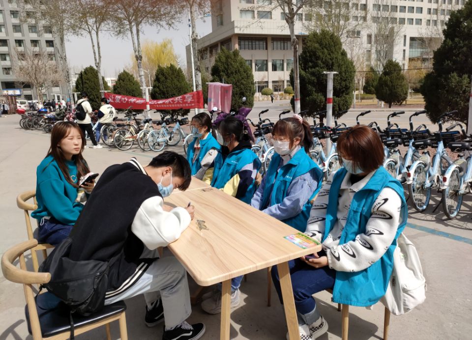 爱心捐书活动,本次活动在贺兰山校区兰馨苑餐厅门口开展。