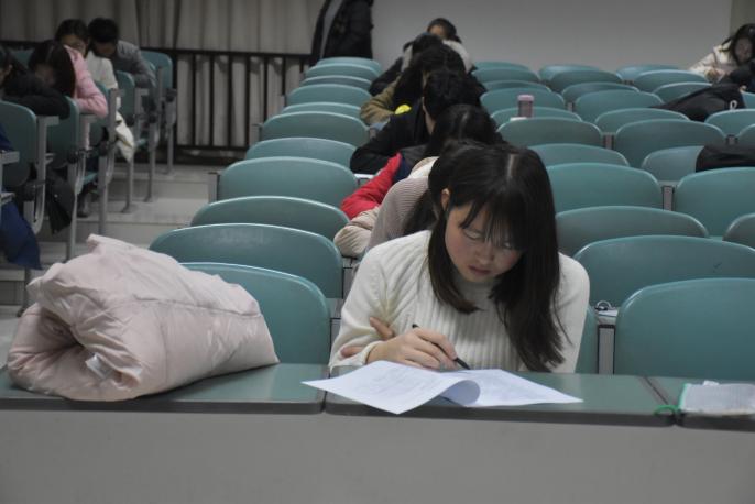 党委副书记李琦、学生辅导员何韶华巡考,学生干部监考。随着监考员发出开考指令,考生迅速沉浸在竞赛中,一刻不敢懈怠、争分夺秒地答题。在一个半小时的唰唰落笔声后,上交了一份让自己满意的答卷。