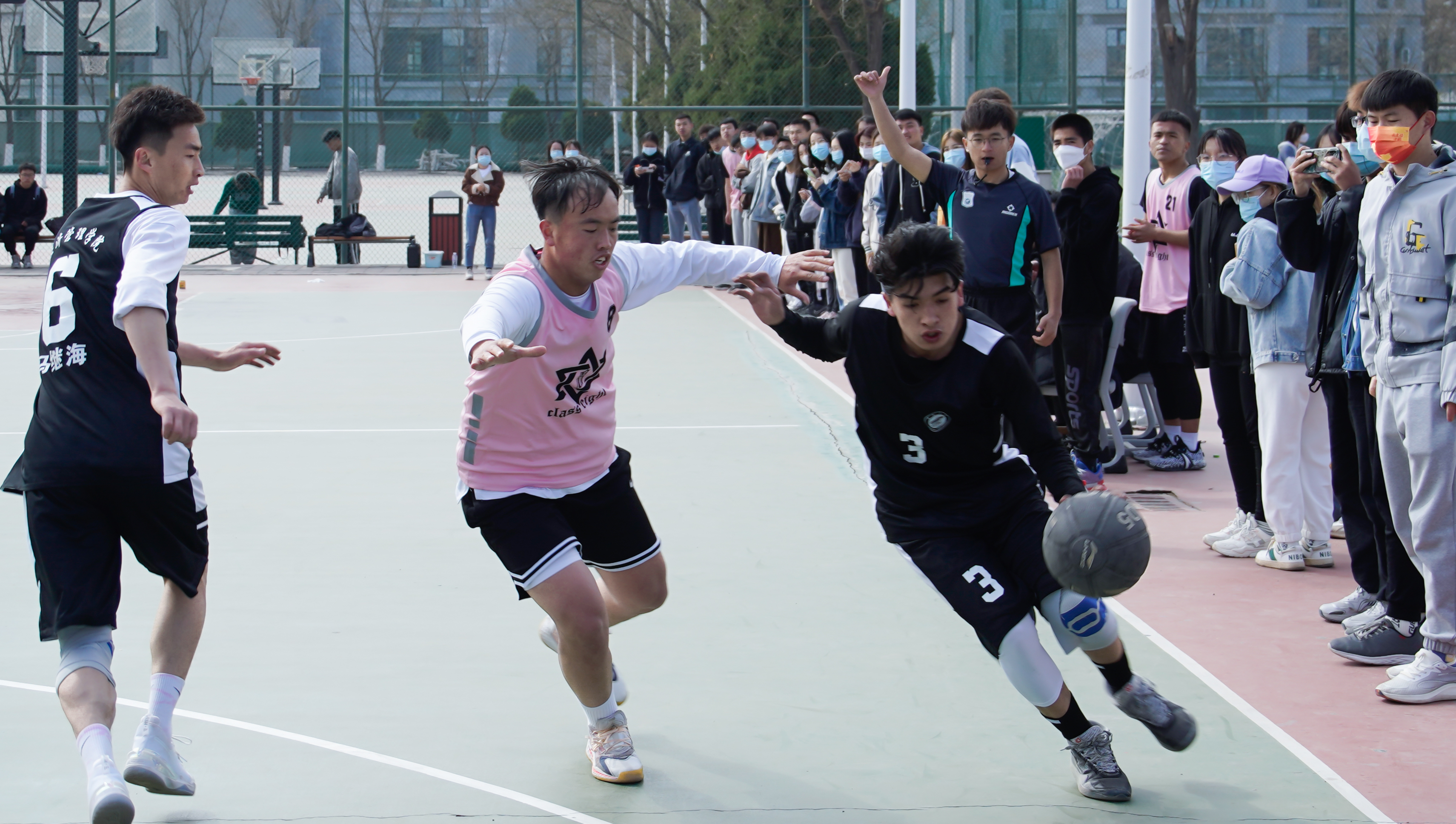 释放激情,团结拼搏。赛场上同学们你攻我守,帅气利落的投球动作展示了他们精湛的球技。整个比赛中,他们血气方刚,顽强拼搏,丝毫不放松每一次进攻机会,用各式各样的篮球技巧和精准的投篮为球队争得了一分又一分。