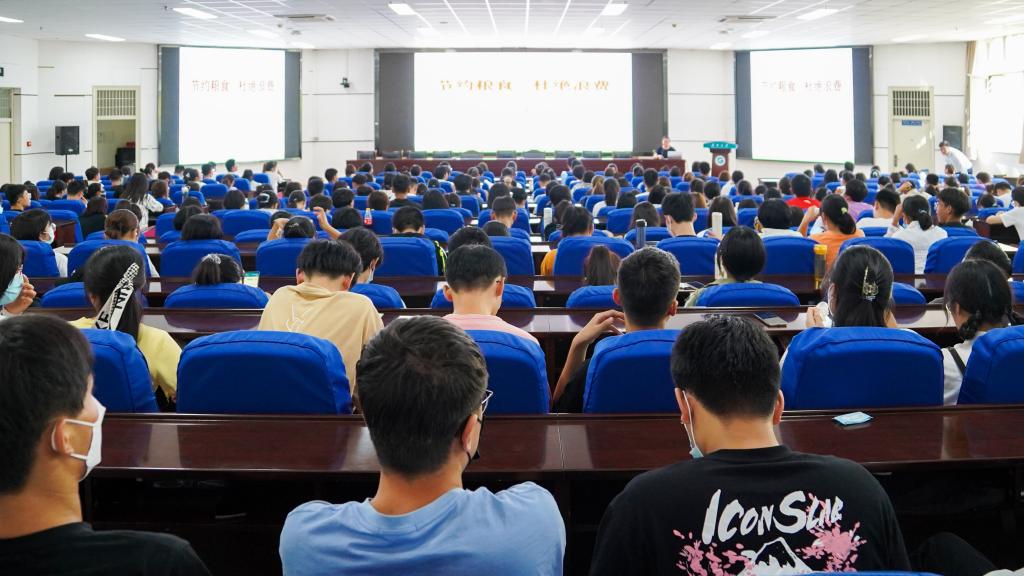 “粮食是用来满足温饱的不是用来浪费的。”张萌菁从身边的事例出发,用实例说明粮食在日常生活中的重要性,并引用习近平总书记的话阐明了“一粥一饭,当思来之不易”的道理,从世界粮食浪费情况、中国粮食浪费情况、大学粮食浪费现状三个维度揭示粮食浪费现状,让同学们更深刻地了解到当下粮食浪费情况,由此鼓励同学们在平时就餐中自觉做到光盘。当谈到杜绝浪费时,张萌菁从法律制度层面、书写倡议书、思想道德层面三个层面讲解,呼吁同学节约粮食,摒弃不好的奢靡炫耀之风,以节约粮食为荣,以浪费粮食为耻,从自身做起,从点滴做起。