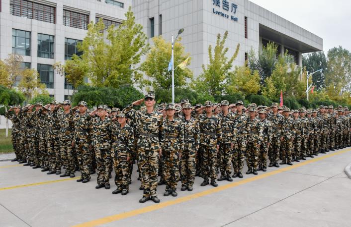 党委书记张桓,副书记程胜利,2018级辅导员王嘉豫,在贺兰山校区文荟楼前对辛苦训练17天的2018级全体新生进行慰问。
