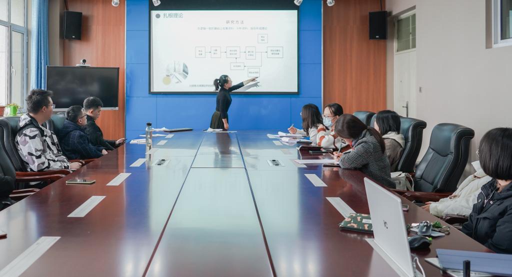 文献资料是针对某一方面主题,在搜集大量文献资料后进行综合分析再撰写而成的,刘宇娜从文献综述概念着手,通过详细分析“综”与“述”关系,指出要对文献资料进行综合整理后进行全面而深入的论述。选题是文章第一吸引力,因此选题要有针对性、可行性。文献检索方式丰富而多样,但收集的材料要具有代表性。刘宇娜分享了自己以前遇到的检索问题,并以此为例告诉参会同学阅读文献要做到泛读与精读相结合,同时要养成总结的习惯。杨慧基于自身研究经验,将文献综述的撰写分为基本思路、资料收集、三级编码、形成理论模型四个部分。明确基本思路要做到从资料中产生理论,自比较中分析优劣,灵活运用文献,从而做到逻辑严谨、心中有数。她还为参会学生列举分析了多种资料收集方案,目的抽样清晰明确、理论抽样注重数据的丰富性,滚雪球抽样在特定时期亦不失为一种可靠的方法。她还强调要注重建立概念与范畴之间的联系,将原始资料概念化、具体化、可视化。分享结束后刘宇娜、杨慧对在场同学的提问进行详细的解答,本次交流会在同学们热情洋溢的讨论声中圆满结束。