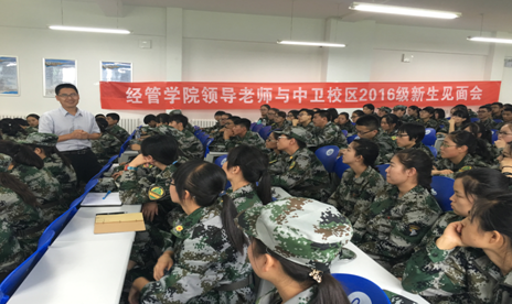 随后,工商管理系主任杨彩玲老师向中卫校区电子商务专业及市场营销专业新生介绍了工商管理系的师资及专业设置情况,并对电子商务专业进行了详细介绍。市场营销负责人王仲梅教授对市场营销专业的教师团队、培养目标及课程设置等情况进行了介绍。