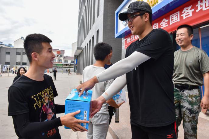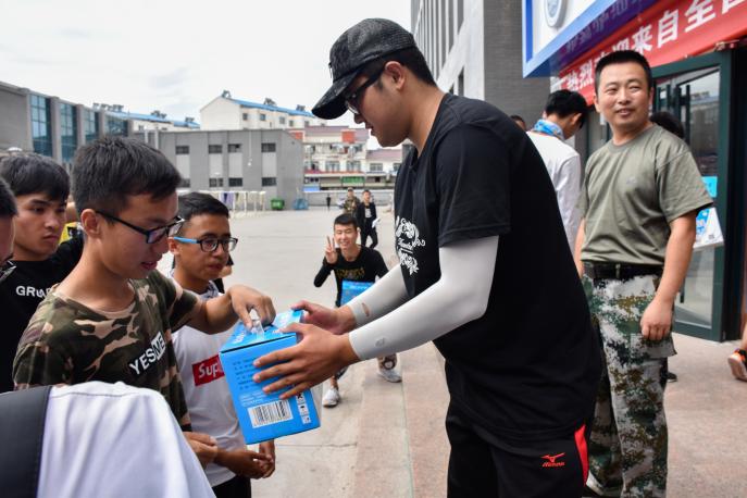 领导为六十名演职人员分发慰问品,程胜利说道“我们老师经常看你们训练的视频,我们为你们而骄傲!”