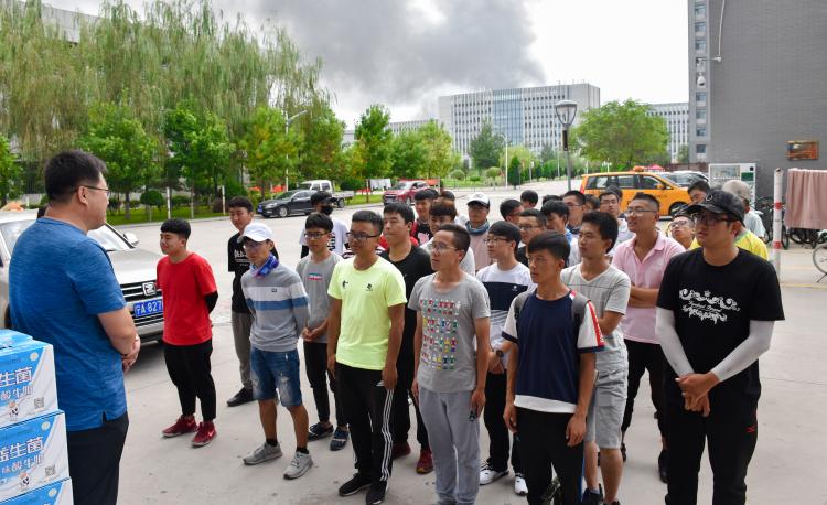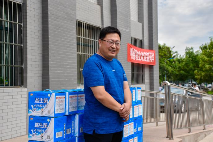 党委副书记程胜利、学生工作办公室主任黄旭兴、专职辅导员艾萨以及17级辅导员张景在男生公寓门前对其进行慰问。