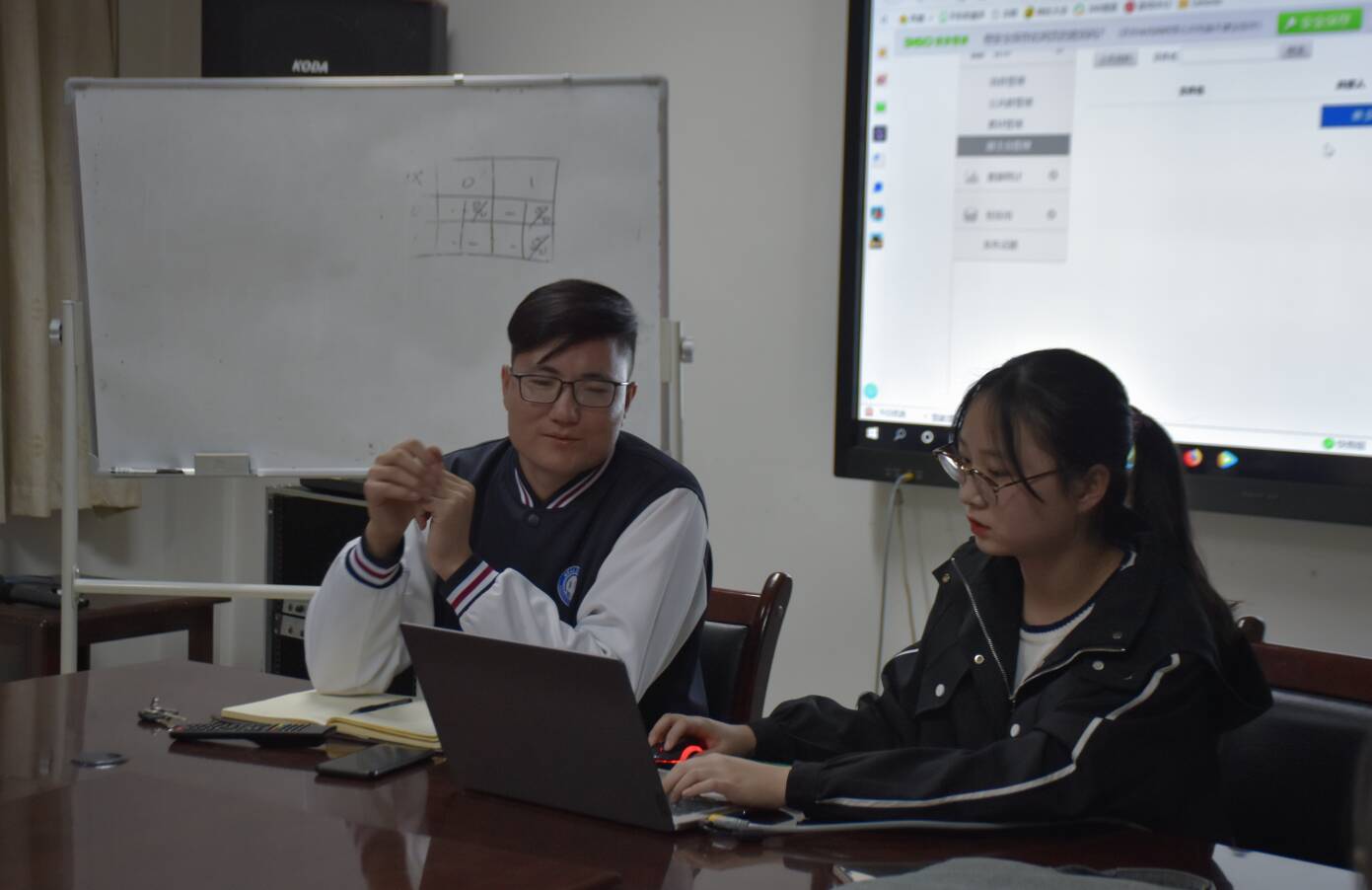 会议伊始,艾萨向大家介绍了易班近期推出的新功能“网上请销假”,并以此为例,阐明了易班致力于便利学生的学习与生活、满足学生社交需求的宗旨。随后,李娜以大屏幕在线操作的方式详细讲解了易班各大板块的功能及使用方法:轻应用里的报名、抢票及评选模板为线上活动提供一条龙式的管理与服务;消息、公共群、素材和群主管理等功能为各班级开展管理工作提供多种选择;在手机易班之宁大网薪商场内,同学们可以用活跃度兑换奖品,惊喜多多,精彩不断;“易职招聘”板块开展线上招聘会,为求职的同学提供了极大便利;更有账号广场内其他高校的动态推送,让同学们拥有更为广阔的社交体验。各班长仔细聆听并详细记录了培训内容。