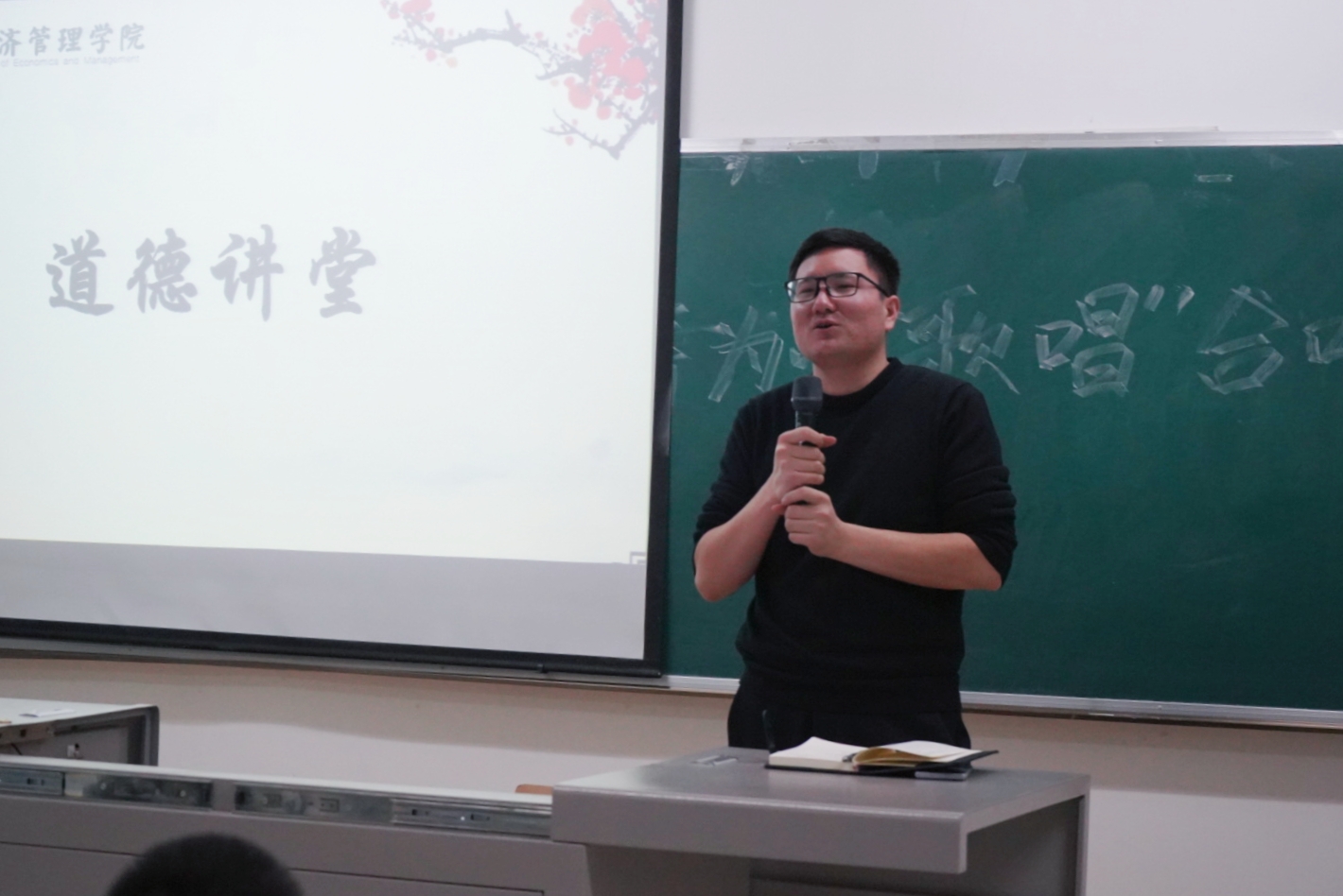 道德讲堂在文荟楼130教室顺利举行。本次会议由2019级辅导员老师艾萨·阿尤普主持,2020级辅导员老师孙文元与2021级辅导员老师禹文杰主讲,2019、2020、2021级全体学生干部参与。