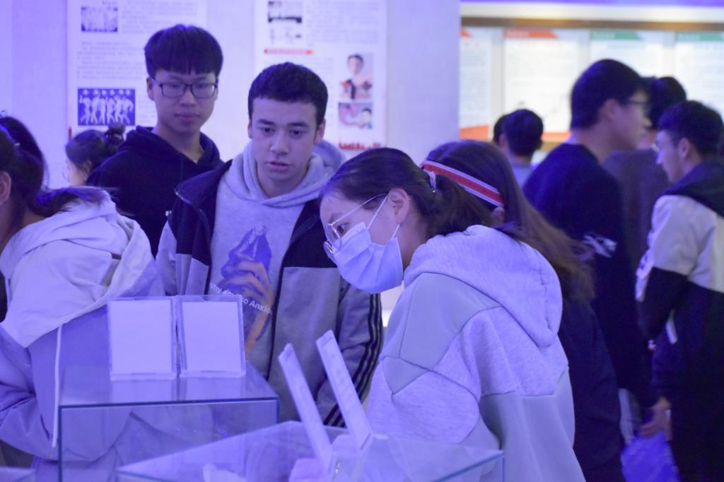 同学们随讲解员走进禁毒教育基地。映入眼帘的是“禁绝毒品,功在当代,利在千秋”的红色字样,展板上是中国近代以来的禁毒史,以及新中国成立后各届领导人在禁毒工作上的相关政策,展现了国家对于毒品坚决抵制的态度。继续向前走,蓝色灯光下投影出各类仿真毒品与吸毒工具。在走廊尽头,新型毒品的展板也开始出现,如冰毒、麻古等。展板上一一列举了吸食毒品的危害,触目惊心的画面为同学们敲响了远离毒品的警钟。在禁毒作品展区域,同学们翻看了以往学长学姐们禁毒知识考试的答卷,增长了禁毒的相关知识。