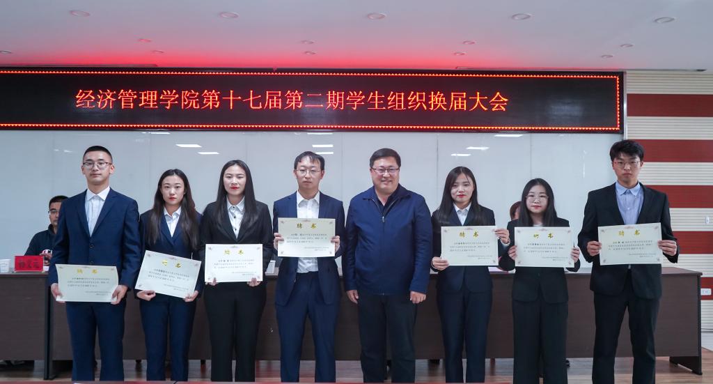 党委副书记程胜利,学生工作办公室负责人何韶华,学生工作办公室辅导员艾萨·阿尤普、姚硕、孙文元及第十七届全体学生骨干参加此次换届大会。会议由何韶华主持。