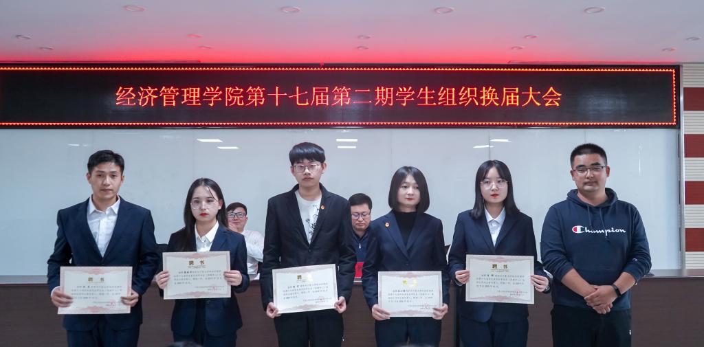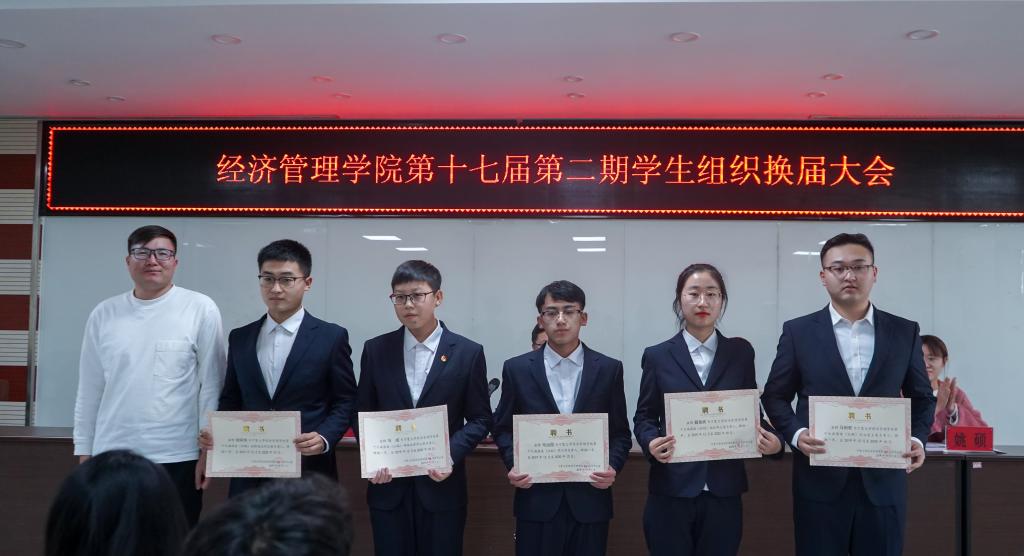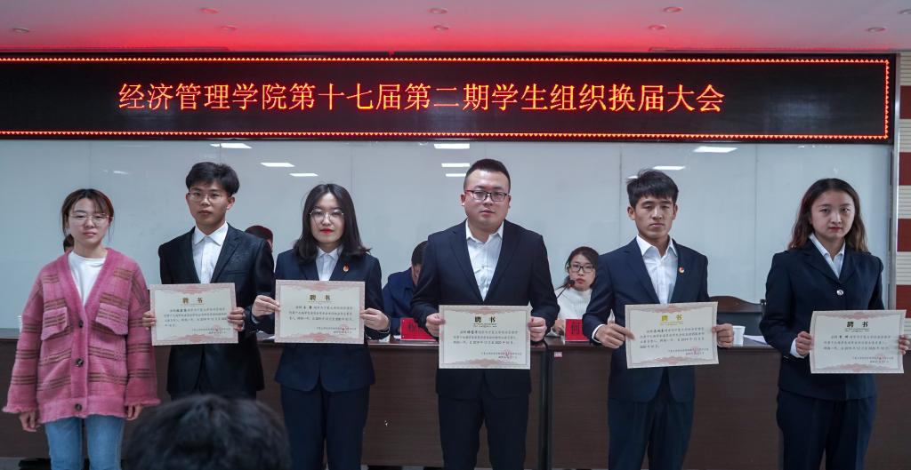 团委副书记、网络思想政治工作中心副主任、社团联合会副会长颁发聘书;艾萨为团委(社团联合会)学生骨干代表颁发聘书;姚硕、孙文元为学生会(网络思想政治工作中心)学生骨干代表颁发聘书。