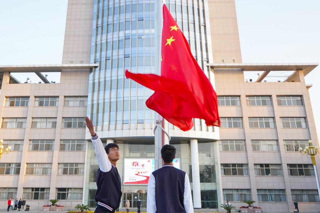 在贺兰山校区德勤楼前举行隆重的升国旗仪式。赌场老虎机