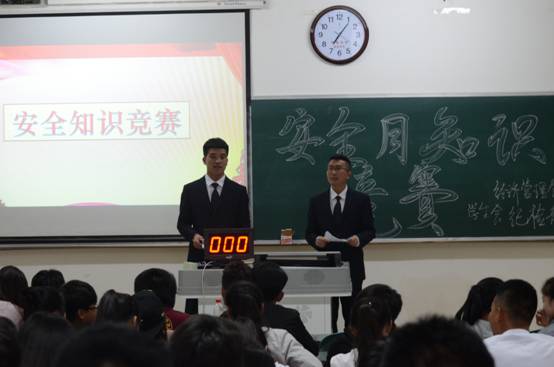 安全知识竞赛分为轮流答题和战队抢答两部分。比赛开始后,选手们就迅速进入了状态,尽管试题的难度随着比赛进程逐渐提升,选手们依旧能充分发挥团队协作精神,积极应对;在抢答题环节,各个战队争先恐后,毫不退让,更是将比赛带入高潮。活动的另一亮点是歌词改编大赛选手们带来的精彩演唱,通过把安全知识改编为歌词演唱的形式,极大地增加了竞赛的趣味性。最后在激烈的PK较量中,会计一班战队勇夺桂冠。李艺舟和张亮为最佳选手,马林和马荣同学获得了歌曲改编大赛的奖项。