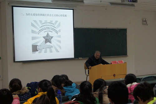 关工委“五老”报告团刘瑛副教授于11月12日晚7点在文科楼130教室进行了“社会主义核心价值观”宣讲活动,活动由辅导员叶晨露老师主持。
