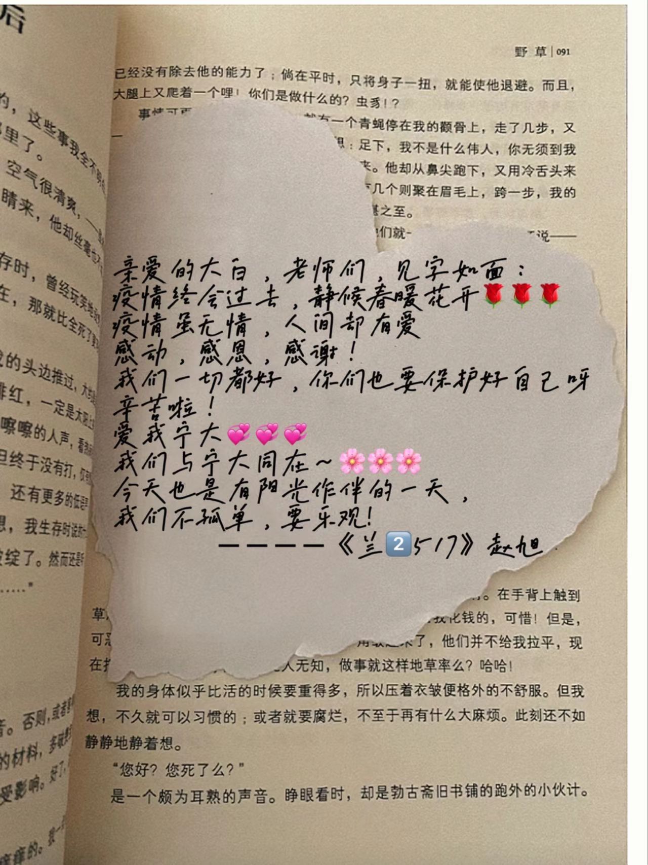 天意怜幽草,人间重晚情。经管师生彼此守望,相互奔赴,我们坚信没有一个冬天不可逾越,没有一个春天不会来临。爱与希望点亮万家灯火,映照人间温暖。